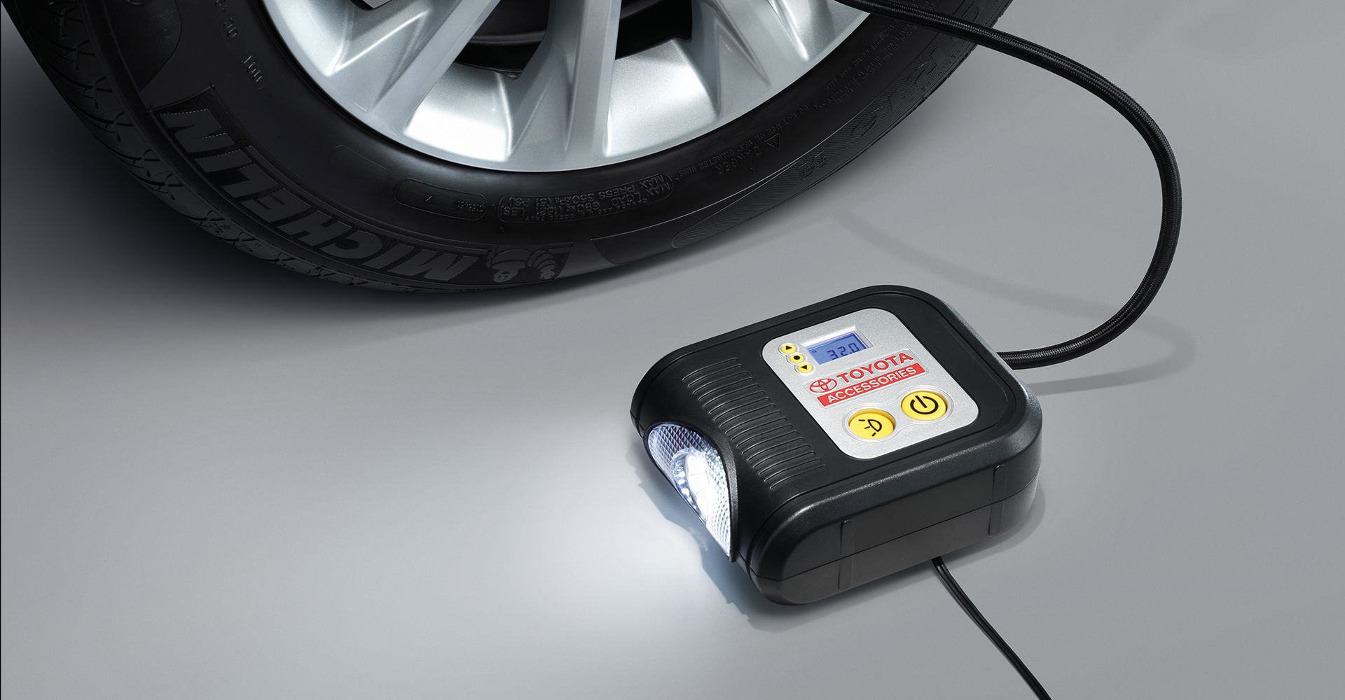 ● เครื่องเติมลมยาง Digital แบบพกพาที่ได้รับการออกแบบสำหรับการเติมลมยางรถยนต์อย่างรวดเร็วซึ่งสามารถใช้ได้ทุกที่ทุกเวลา โดยใช้กับที่จุดบุหรี่ในรถยนต์โดยเฉพาะอย่างยิ่ง เมื่อยางรถยนต์เกิดเสียหายระหว่างการขับขี่ สามารถเติมลมยางรถยนต์ชั่วคราวเพื่อที่จะขับรถไปยังศูนย์บริการที่ใกล้ที่สุดโดยไม่จำเป็นต้องใช้ยางอะไหล่หรือรถลาก ช่วยประหยัดเวลาและค่าใช้จ่าย