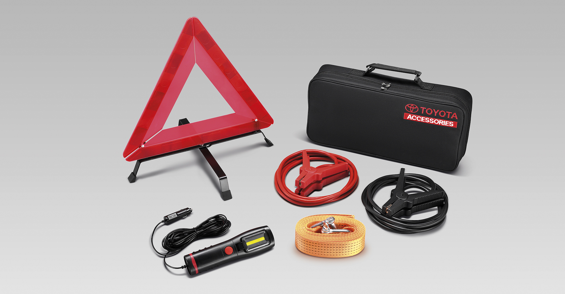 (2) ไฟฉายขนาดกระทัดรัดให้ความสว่าง 320-330 LUMEN สามารถยึดติดกับตัวรถด้วยแม่เหล็กด้านหลัง มาพร้อมสายยาว 6 เมตร สามารถปรับองศาได้ถึง 90 องศา เพื่อให้สะดวกต่อการใช้งานและแสงไฟสว่างมากขึ้น พร้อมฟิวส์ตัดไฟในตัว และยังสามารถปรับเป็นไฟกระพริบสีแดง (Emergency lamp) เพื่อใช้งานร่วมกับป้ายสามเหลี่ยมกรณีฉุกเฉิน ใช้งานได้อย่างง่ายโดยต่อเข้ากับขั้วจุดบุหรี่ในรถ