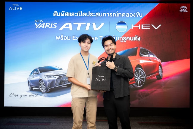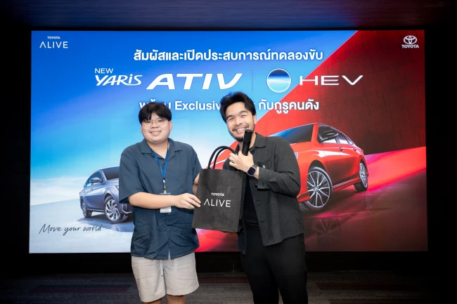 ภาพความประทับใจกับกิจกรรม NEW YARIS ATIV HEV EXCLUSIVE TEST DRIVE X Cokey P เมื่อวันที่ 8 กันยายน 2568 ที่ผ่านมา สนุกสนาน เต็มอิ่มไปด้วยข้อมูลจาก Instructor และร่วมพูดคุยกันแบบ Exclusive กับกูรูชื่อดัง "คุณโค้ก" จากเพจ Cokey P ที่มาร่วมแชร์ประสบการณ์การทดลองขับและความประทับใจ กับ NEW YARIS ATIV HEV พร้อมทั้งกิจกรรมทดลองขับแบบ Exclusive ที่ TOYOTA ALIVE
