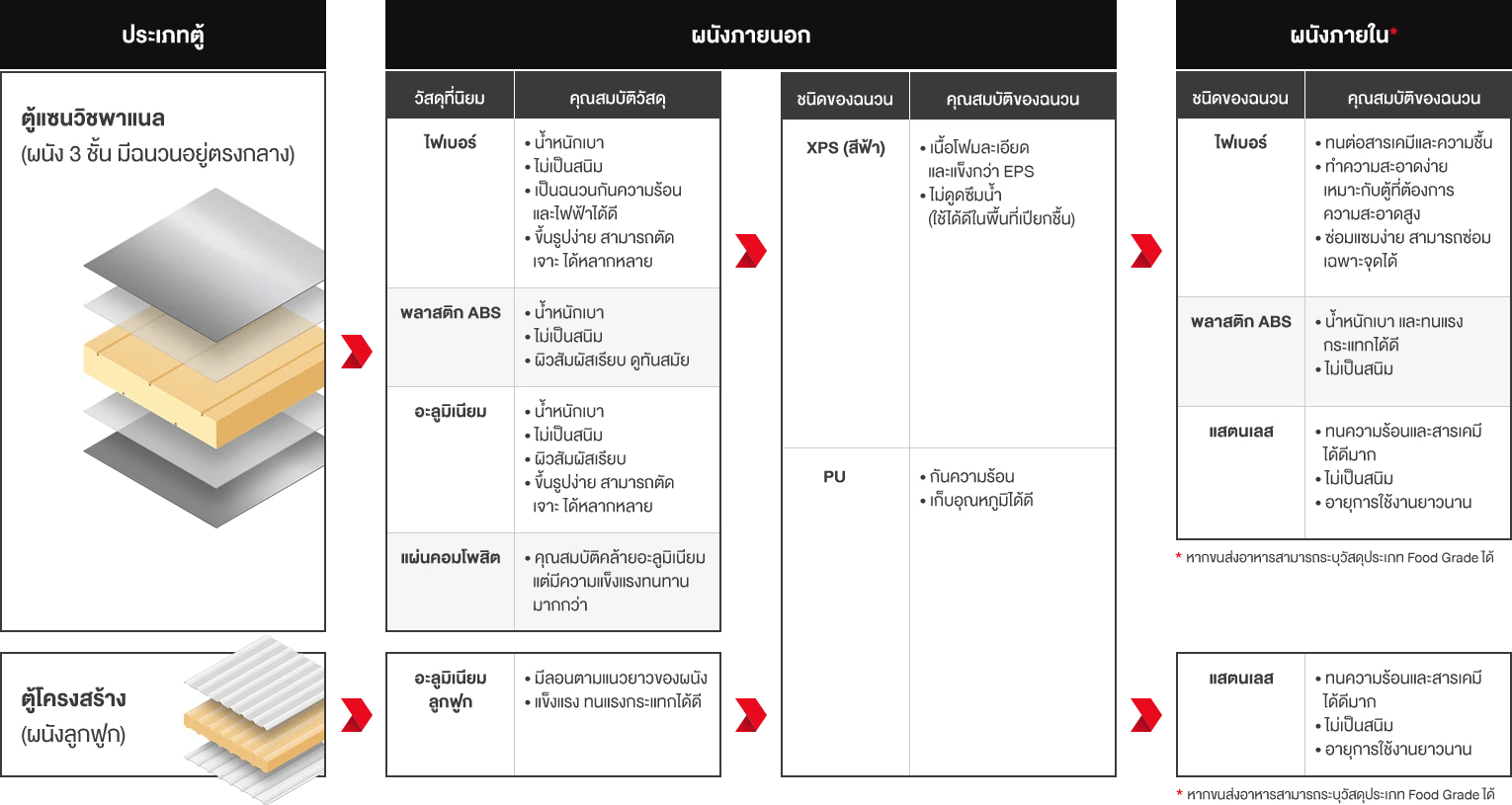 โครงสร้างหลักของตู้ส่วนใหญ่จะนิยมใช้เป็นแสตนเลสและอะลูมิเนียม