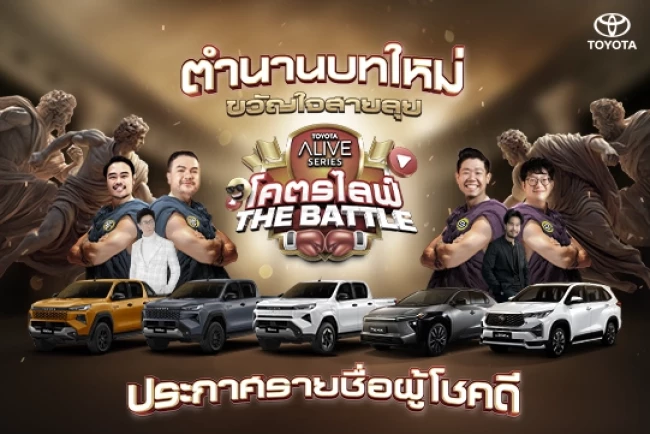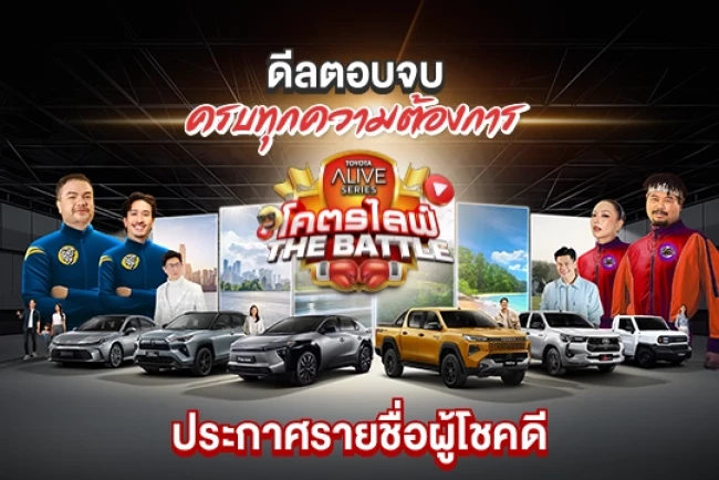 ประกาศรายชื่อผู้โชคดี TOYOTA ALIVE SERIES x โคตรไลฟ์เดอะแบตเทิล “ดีลตอบจบ ครบทุกความต้องการ”