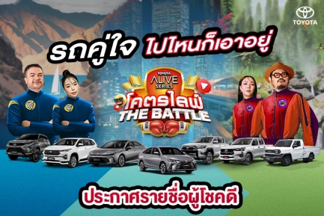 ประกาศรายชื่อผู้โชคดี TOYOTA ALIVE SERIES x โคตรไลฟ์เดอะแบตเทิล “รถคู่ใจ ไปไหนก็เอาอยู่”