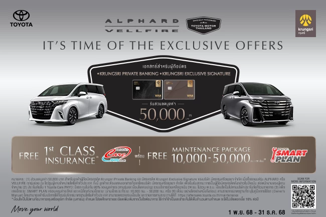 ALPHARD & VELLFIRE เอกสิทธิ์สำหรับผู้ถือบัตรเครดิต Krungsri Private Banking และบัตรเครดิต Krungsri Exclusive Signature