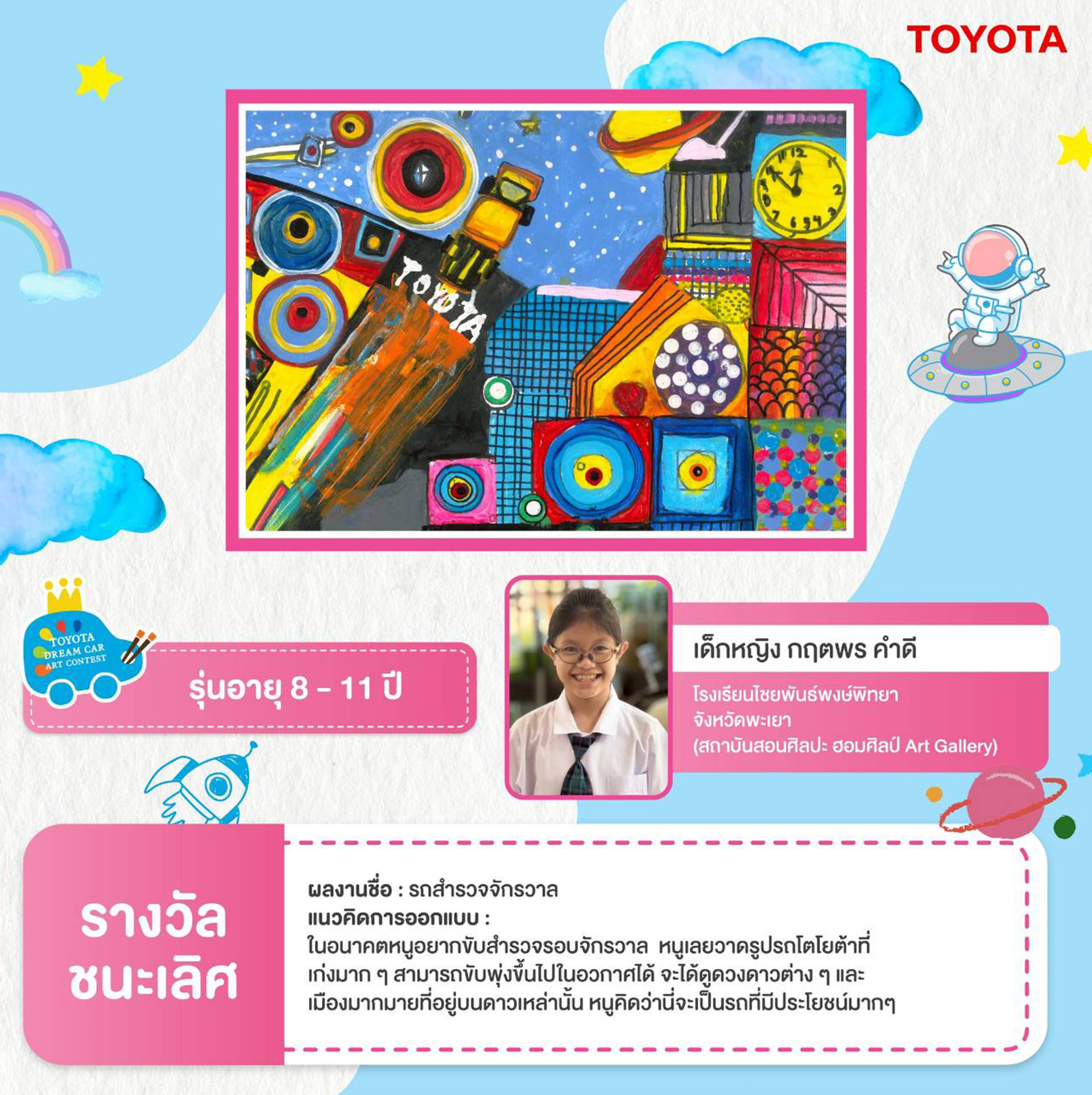 ขอแสดงความยินดี กับ จิตรกรตัวน้อยที่ได้รับรางวัลชนะเลิศ รุ่นอายุ 8 - 11 ปี จากการประกวดภาพวาดระบายสี Toyota Dream Car Art Contest 2025